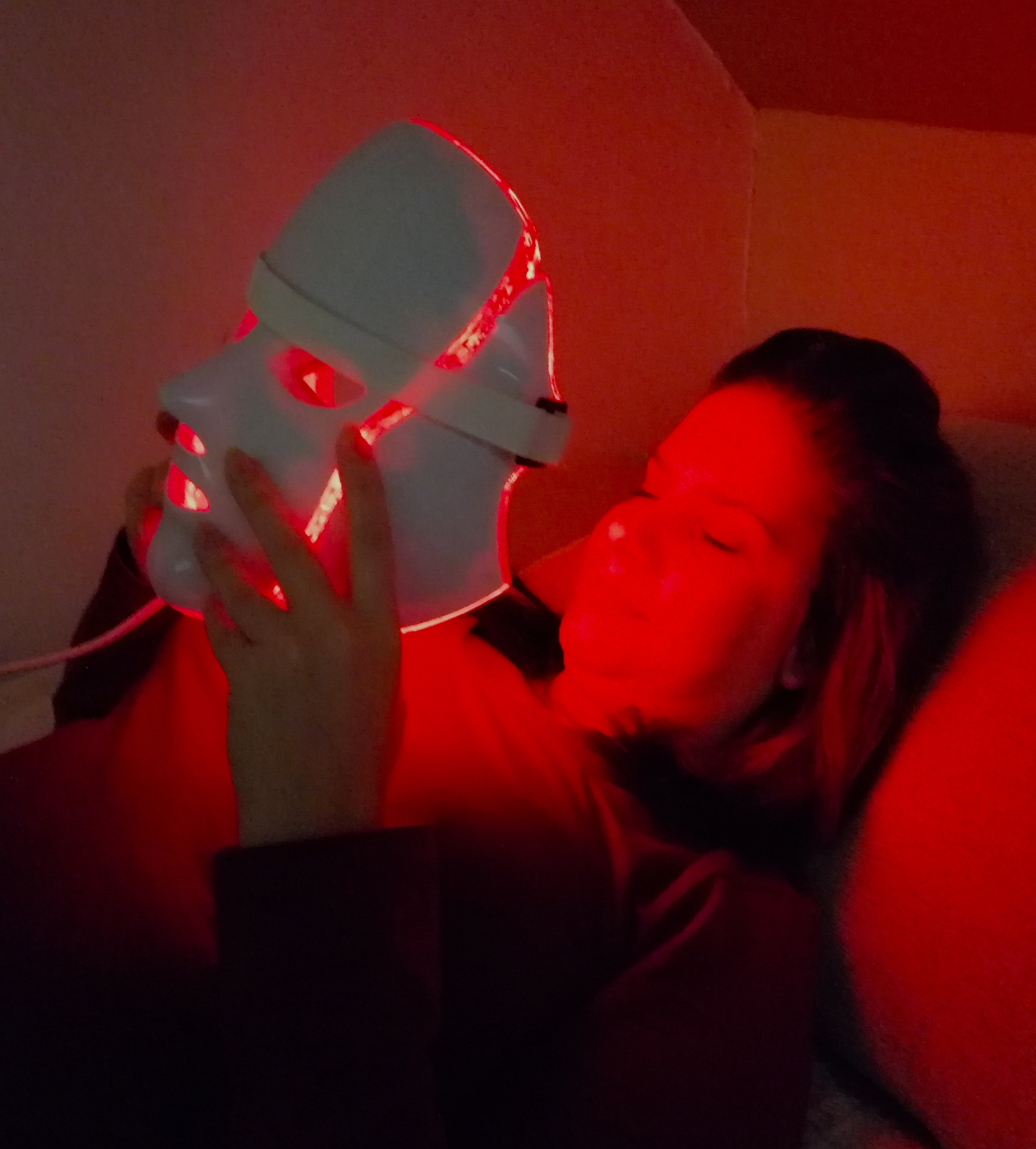 A LED arcmaszk vörös fénnyel működik, amelynek hullámhossza mélyen behatol a bőrbe. Serkenti a kollagéntermelést és a sejtmegújulást, valamint javítja a vérkeringést. Az eredmény? Hatékony anti-aging hatás és ragyogó arcbőr. Ezen túlmenően a vörös fény gyulladáscsökkentő hatást fejt ki és gátolja a pattanások kialakulását.